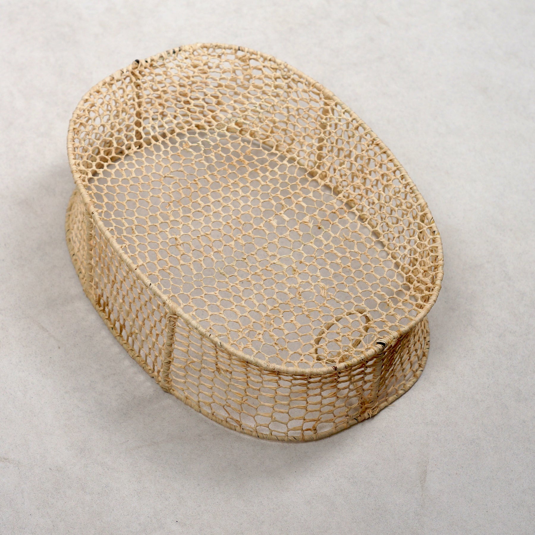 La douceur naturelle du raphia et la réalisation artisanale rendent le produit authentique.