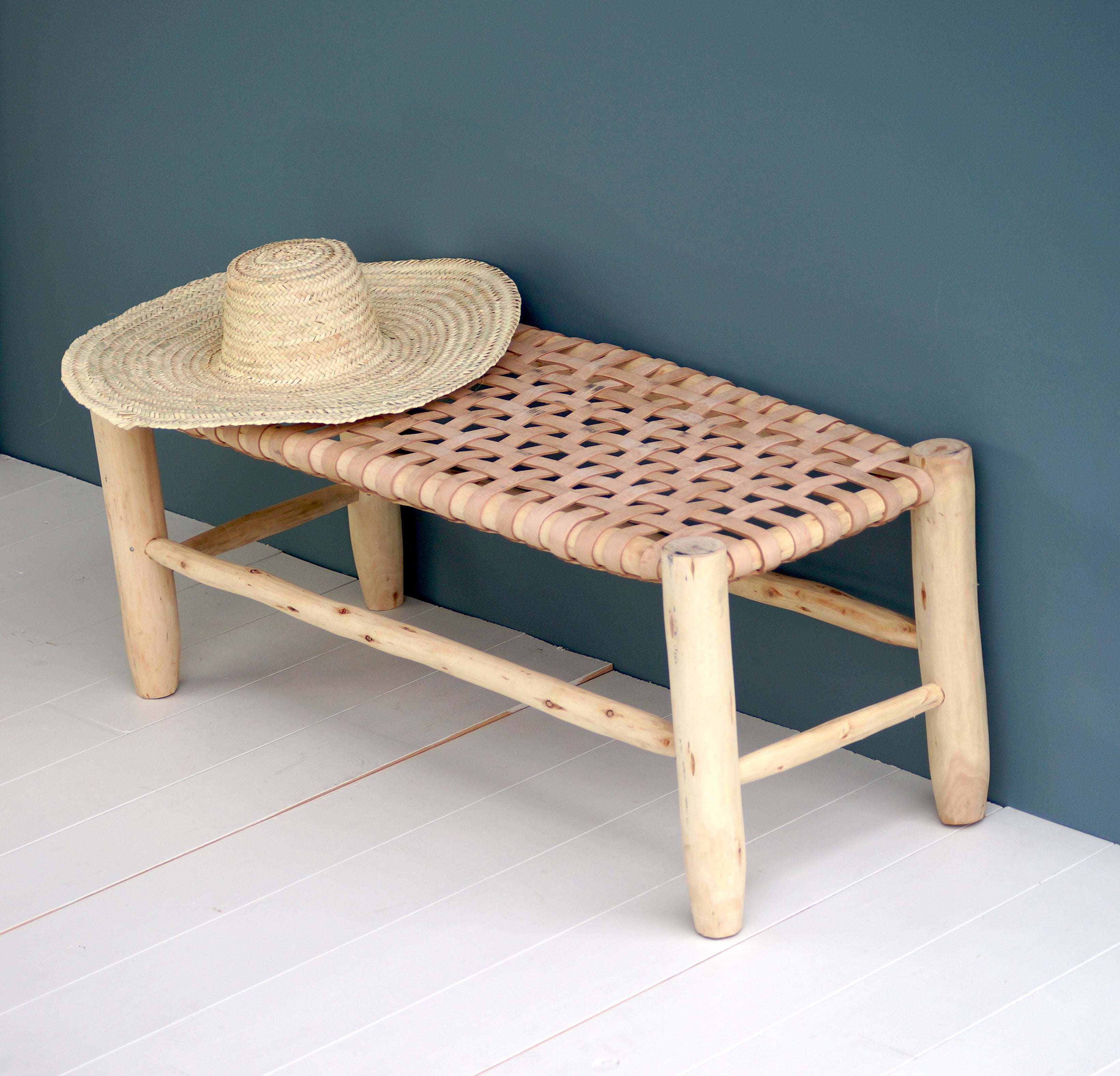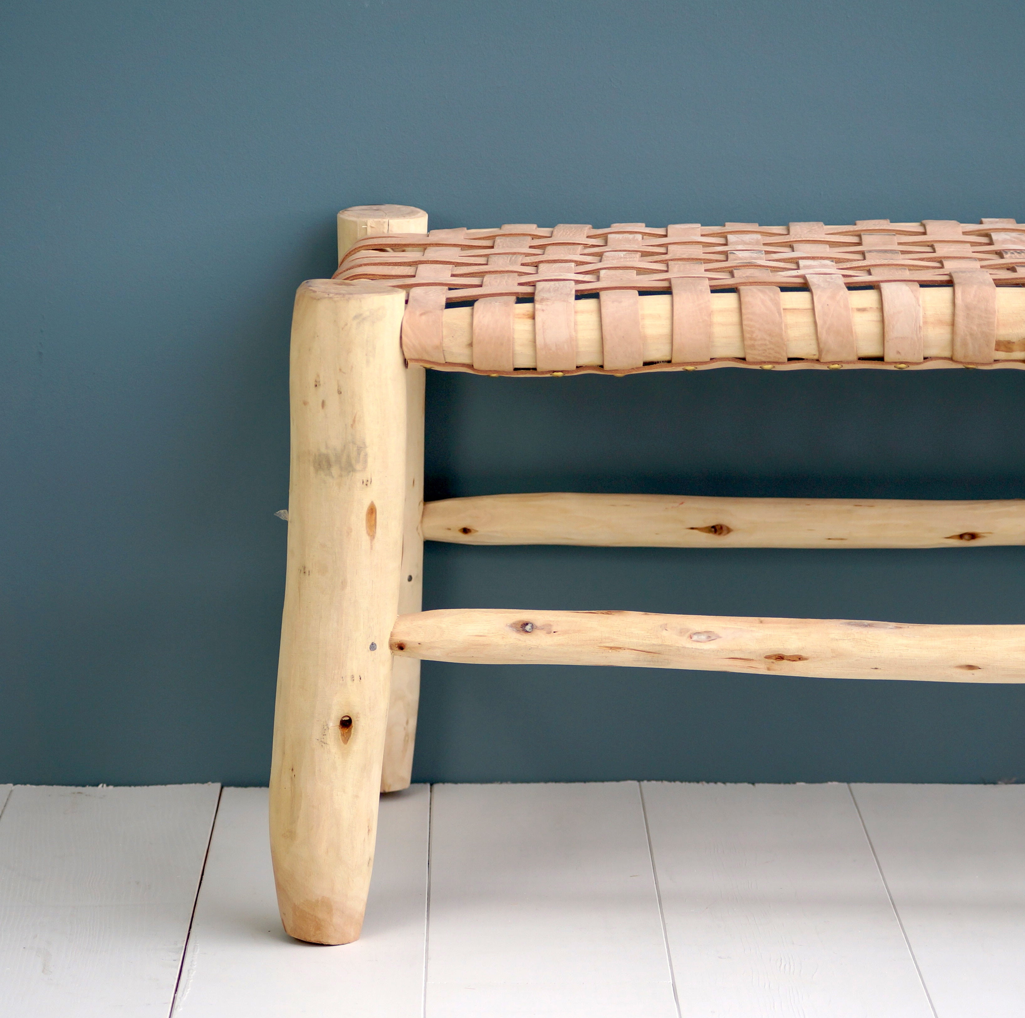 Le banc en bois est l'assise indispensable dans une maison ! Fonctionnel, il vous offre diverses manières de l'utiliser au quotidien. L'assise en cuir tressé apporte du caractère au banc et le différencie de la corde tout en gardant le côté authentique d'un produit brut.