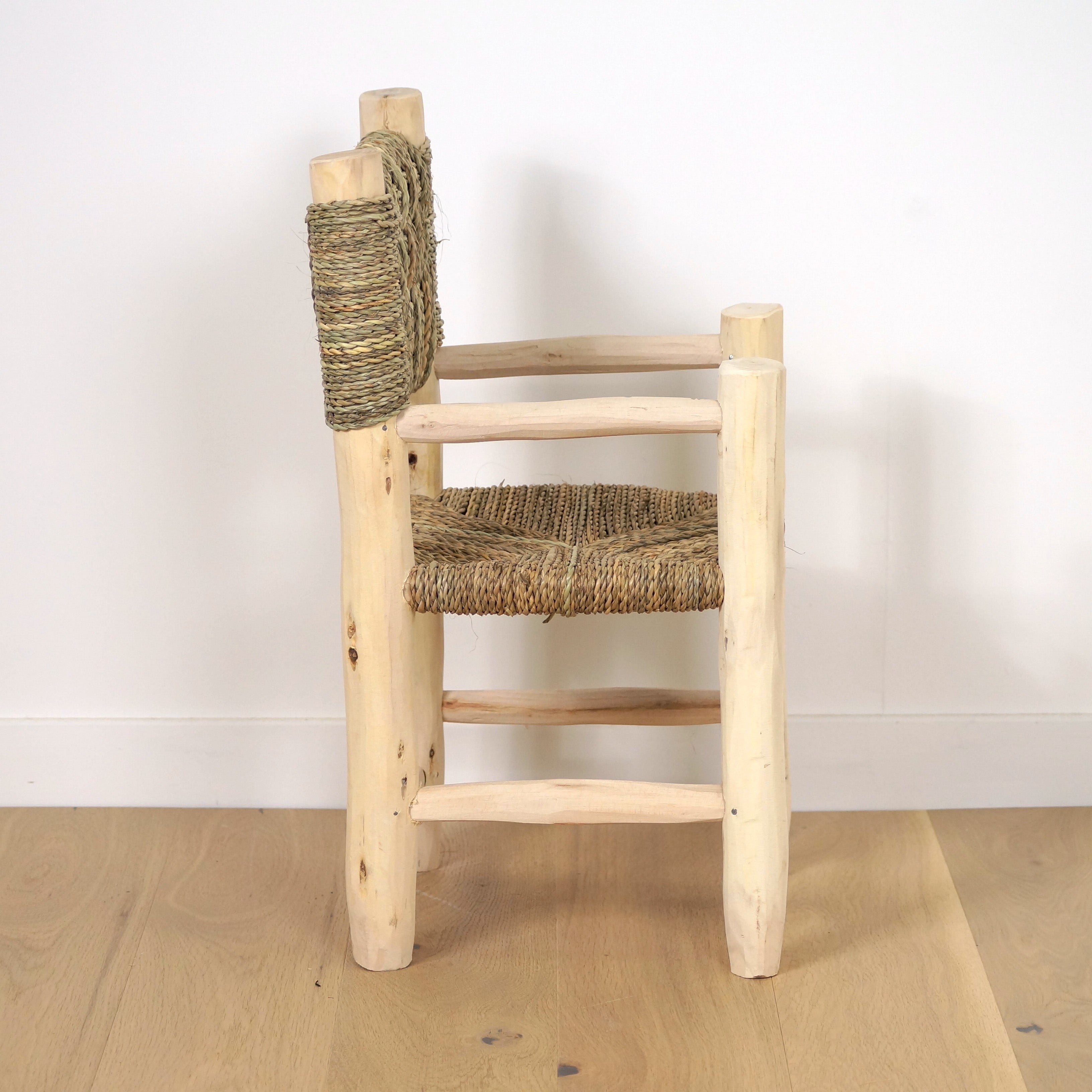 Mignonne et pratique, la chaise marocaine agrémentée de ses accoudoirs en bois brut et corde sera vite adoptée par vos petits bouts. Dans le salon, l'entrée ou la chambre, elle s'intègrera parfaitement dans votre intérieur pour une décoration naturelle. Sa petite taille permet une manipulation facile pour les enfants.
