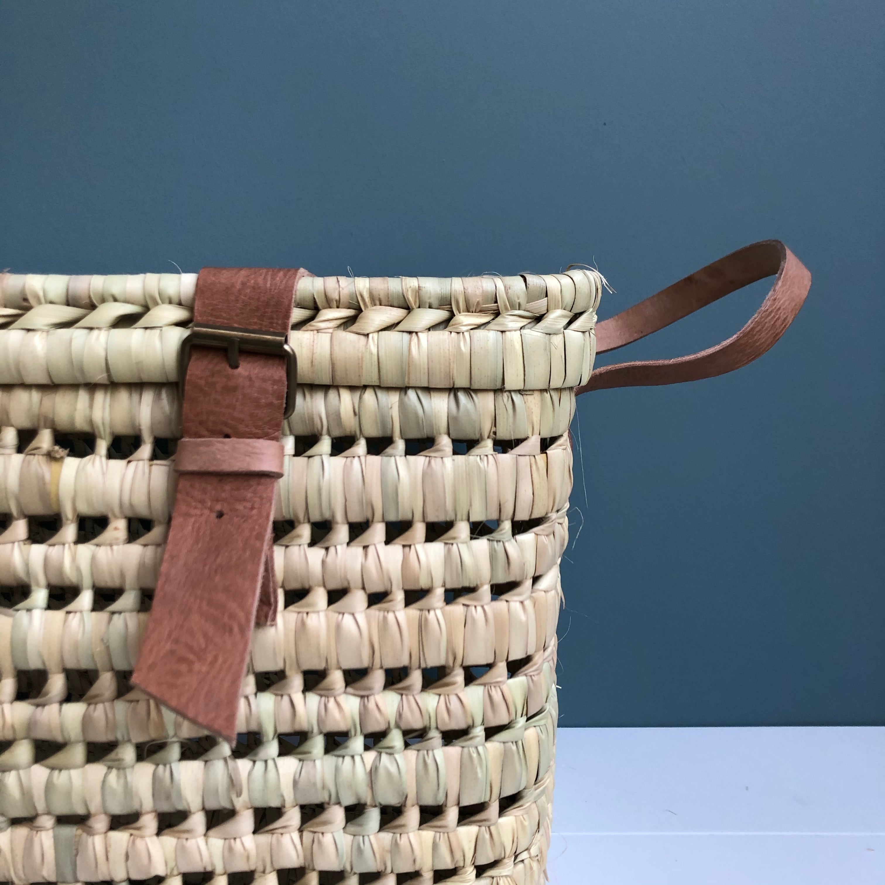 Malle de rangement en feuilles de palmier et cuir 60cm