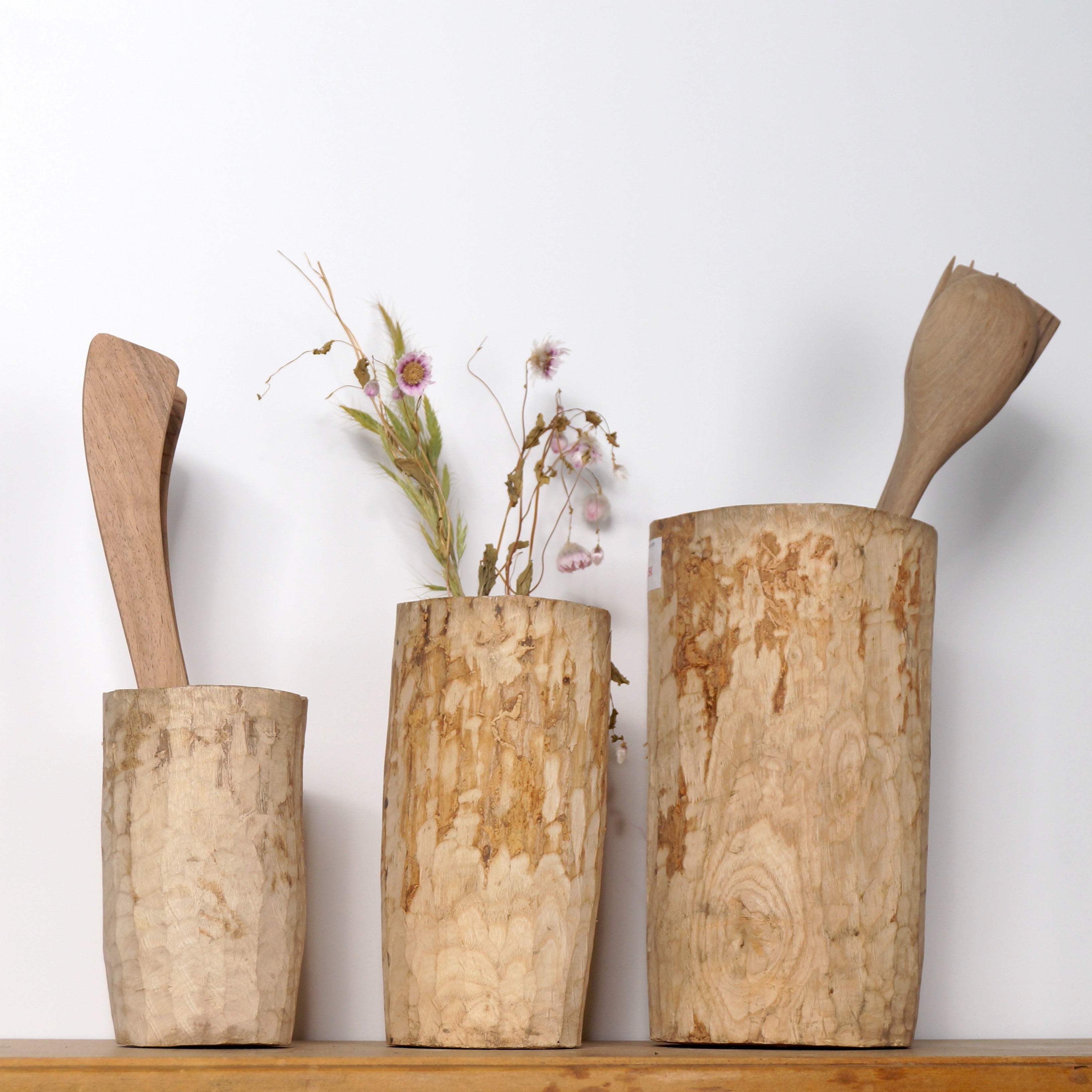 Combinez ce pot à ustensiles avec notre pince en bois ou notre lot de 3 ustensiles de cuisine en noyer.